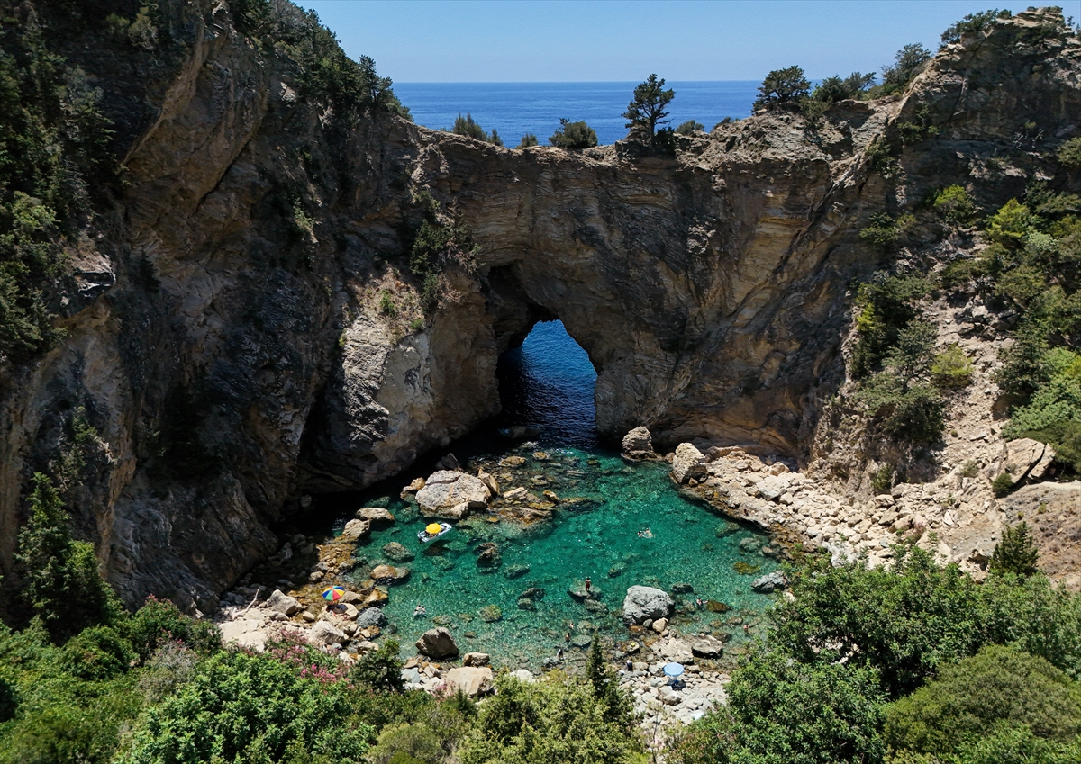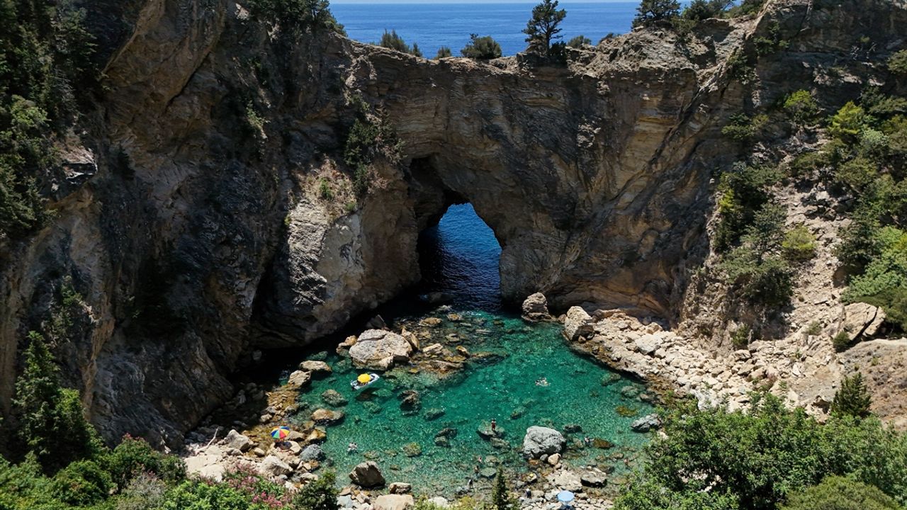Antalya'nın 180 kilometre doğusunda yer alan Gazipaşa ilçesindeki Kral Koyu (Delik Deniz), doğal güzelliğiyle dikkat çekiyor. Antiochia Ad Cragum Antik kenti içinden geçilerek gidilen koy, kentin kıyı bölgesinde yer alan kalıntılar arasında bulunuyor. Adını antik dönemde Kral I. Antiochos’un burada denize girmesi nedeniyle alan koya, çevresini saran muz bahçeleri arasından geçen patika yoldan yürüyerek ulaşılabiliyor.