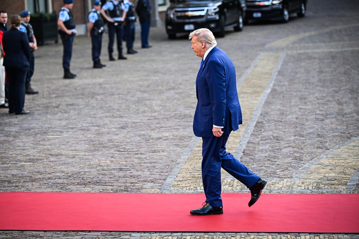 ABD Başkanı Donald Trump, Hollanda’nın Lahey kentinde düzenlenen NATO Zirvesi kapsamında, Hollanda Kral ve Kraliçesi’nin ev sahipliğinde devlet ve hükümet başkanları onuruna verilen akşam yemeğine katılmak üzere Ten Bosch Kraliyet Sarayı’na geldi.