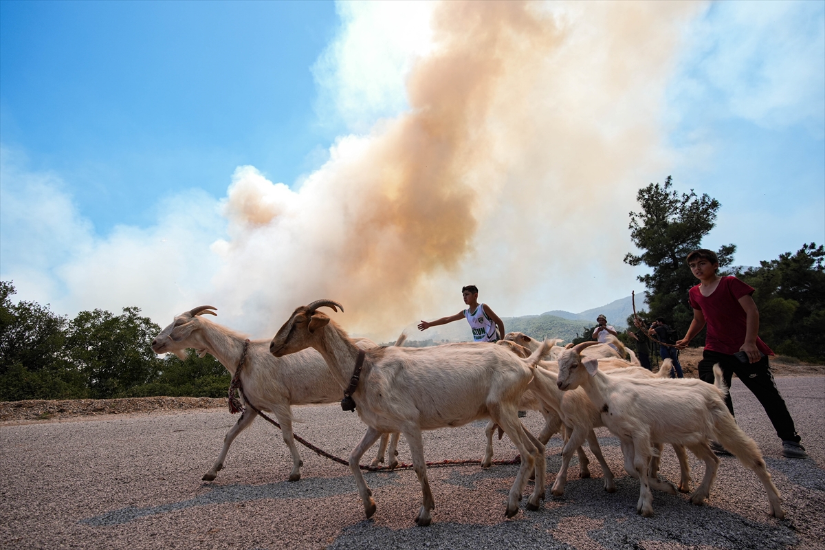 Vatandaşlar orman yangınlarından hayvanlarıyla birlikte kaçıyor!