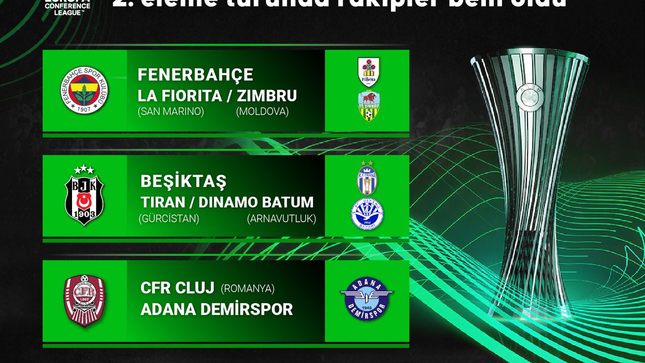 Kura sonucu Adana Demirspor, Romanya'nın CFR Cluj takımıyla eşleşti. Beşiktaş, Tirana (Arnavutluk)-Dinamo Batum (Gürcistan) eşleşmesinin, Fenerbahçe ise La Fiorita (San Marino)-Zimbru (Moldova) eşleşmesinin galibiyle karşılaşacak.