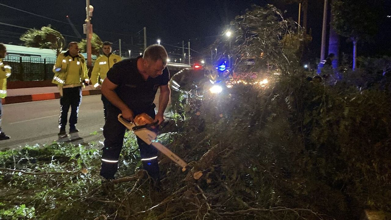 Belediye personeli devrilen ağaç ve uçan çatıları kaldırmak için çalışma başlatırken, polis ekipleri kent genelinde güvenlik önlemi aldı.