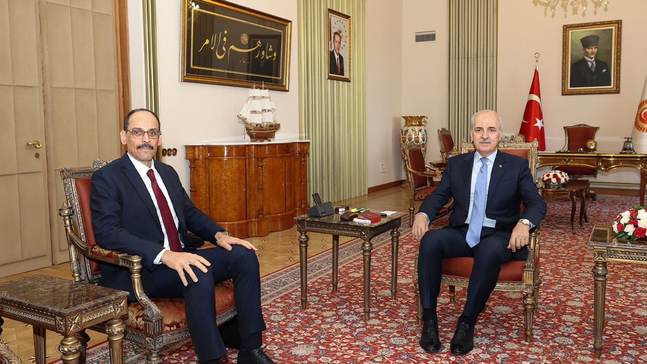 MİT Başkanı Kalın, "Terörsüz Türkiye" sürecinde gelinen aşamaya ilişkin TBMM Başkanı Kurtulmuş’a kapsamlı sunum yaptı. Ayrıca kabulde, silahların teslim edilmeye başlanması ve sonrasında izlenecek yol haritası ile TBMM’de "Terörsüz Türkiye" süreci kapsamında kurulması planlanan komisyona ilişkin de değerlendirmelerde bulunuldu.