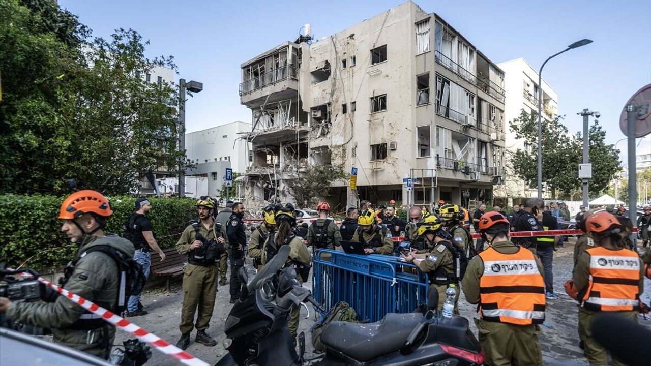 İsrail polisinden yapılan açıklamada, Tel Aviv'de bir yola füzenin isabet ettiği ve patlamanın şiddetiyle çevredeki çok sayıda bina ve araçta hasar oluştuğu belirtildi.