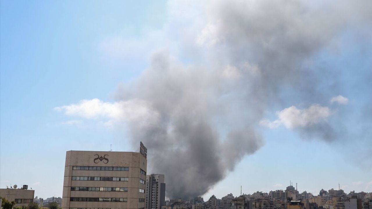 Beyrut'un nüfus yoğunluğu bulunan noktaları da dahil Dahiye bölgesinde hedef alınan noktalardan dumanlar yükseliyor.