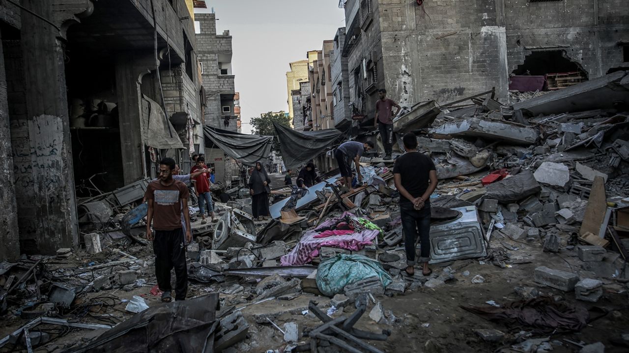 İsrail ordusunun, Gazze’nin batısındaki Eş-Şati Mülteci Kampı’na düzenlediği saldırı sonucu çok sayıda bina kullanılamaz hale geldi.