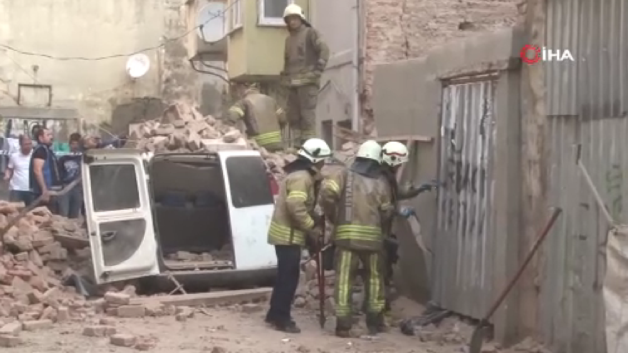 Çökme nedeniyle molozların bir kısmı sokakta park halindeki 34 DOS 783 plakalı hafif ticari aracın üzerine düştü.