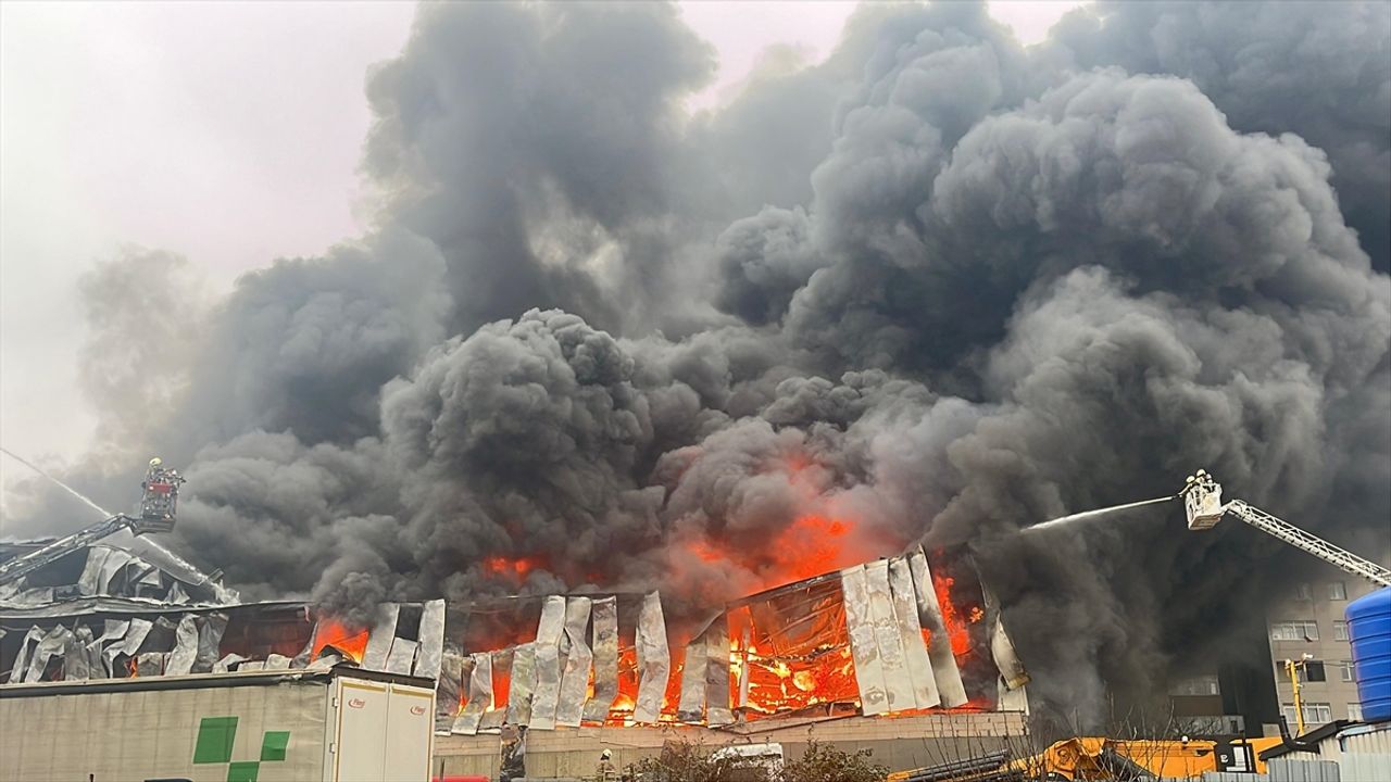 Alevlerin yükseldiği ve yoğun duman oluşan yangına, ekiplerin müdahalesi sürüyor.