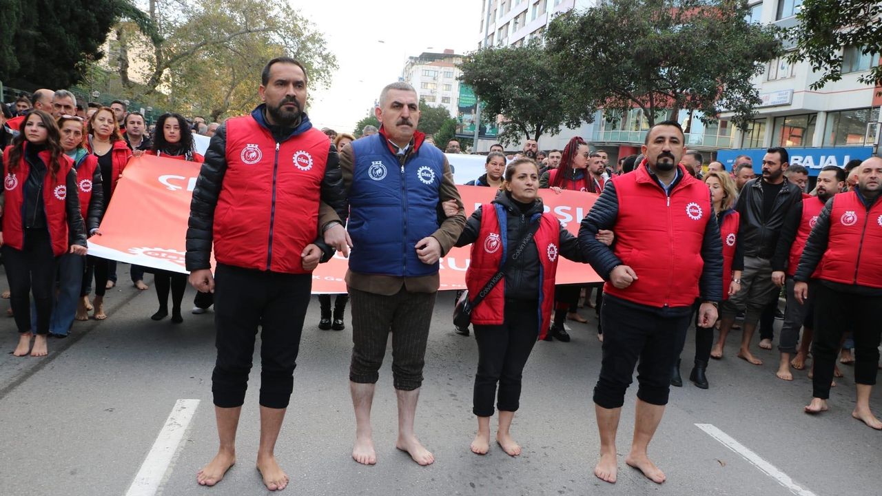 Devrimci İşçi Sendikaları Konfederasyonu'na (DİSK) bağlı Genel-İş Sendikası'nın İzmir'deki 1, 2, 3 ve 9 No'lu şubelerinin öncülüğünde, İzmir Büyükşehir Belediyesi'ne bağlı şirketlerde çalışan işçiler çıplak ayaklı eylem gerçekleştirdi. İZENERJİ, İZELMAN, İZFAŞ, EGEŞEHİR ve İZTEK şirketlerinden çok sayıda işçi, sendika binası önünde bir araya geldi. Burada toplanan grup, taleplerini duyurmak amacıyla Kültürpark'a doğru yürüyüşe geçti. İşçiler, maaşlarındaki kesintilere ve "çıplak ücret" olarak adlandırdıkları uygulamaya dikkat çekmek amacıyla ayakkabılarını çıkararak çıplak ayakla yürüyüş gerçekleştirdi. Eylem sırasında, "Hakkımız olanı istiyoruz," ve "Baskılar bizi yıldıramaz" gibi çeşitli sloganlar atıldı. Grup, yürüyüşlerini Kültürpark'ın 9 Eylül Kapısı'nda sonlandırdı. Burada toplanan işçiler, durumlarına ilişkin bir basın açıklaması düzenledi.