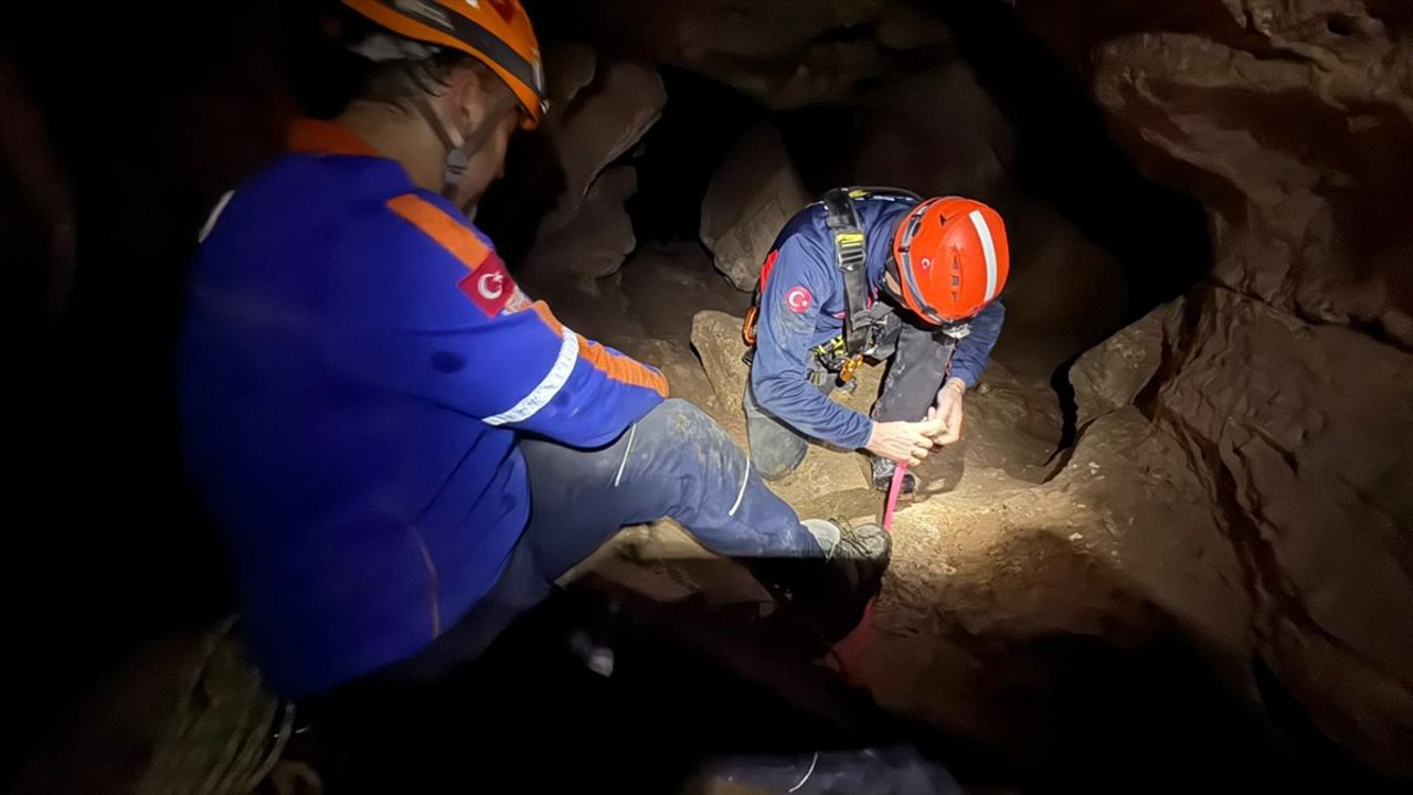 Mağarada gece saatlerinde ilerleyen gruptaki eğitmen, dengesini kaybederek yaklaşık 5 metre yükseklikten çukura düştü.