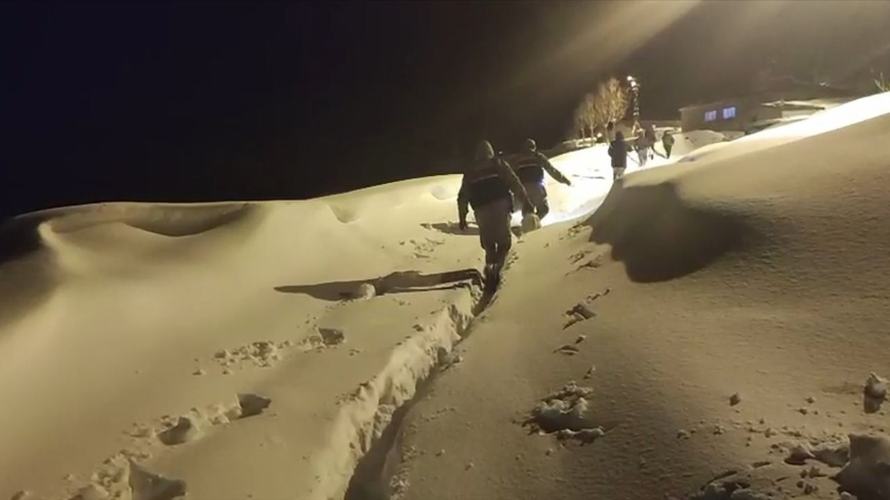 Söz konusu ilaç ve mamaları temin ederek aileye ulaştırılması için harekete geçen jandarma personeli, kar kalınlığının yer yer 2 metreyi bulduğu bölgede araçla belli bir noktaya kadar gitti.