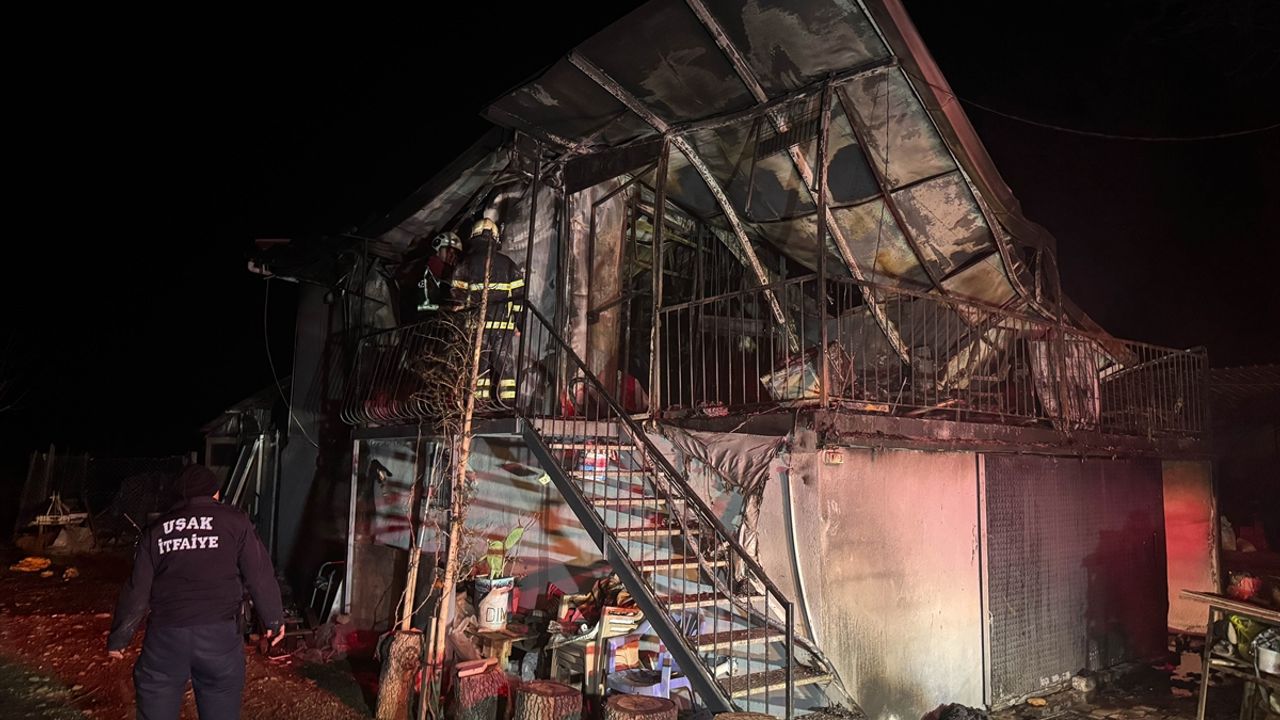 Uşak'ın Sivaslı ilçesinde prefabrik evde çıkan yangında karı koca yanarak hayatını kaybetti.