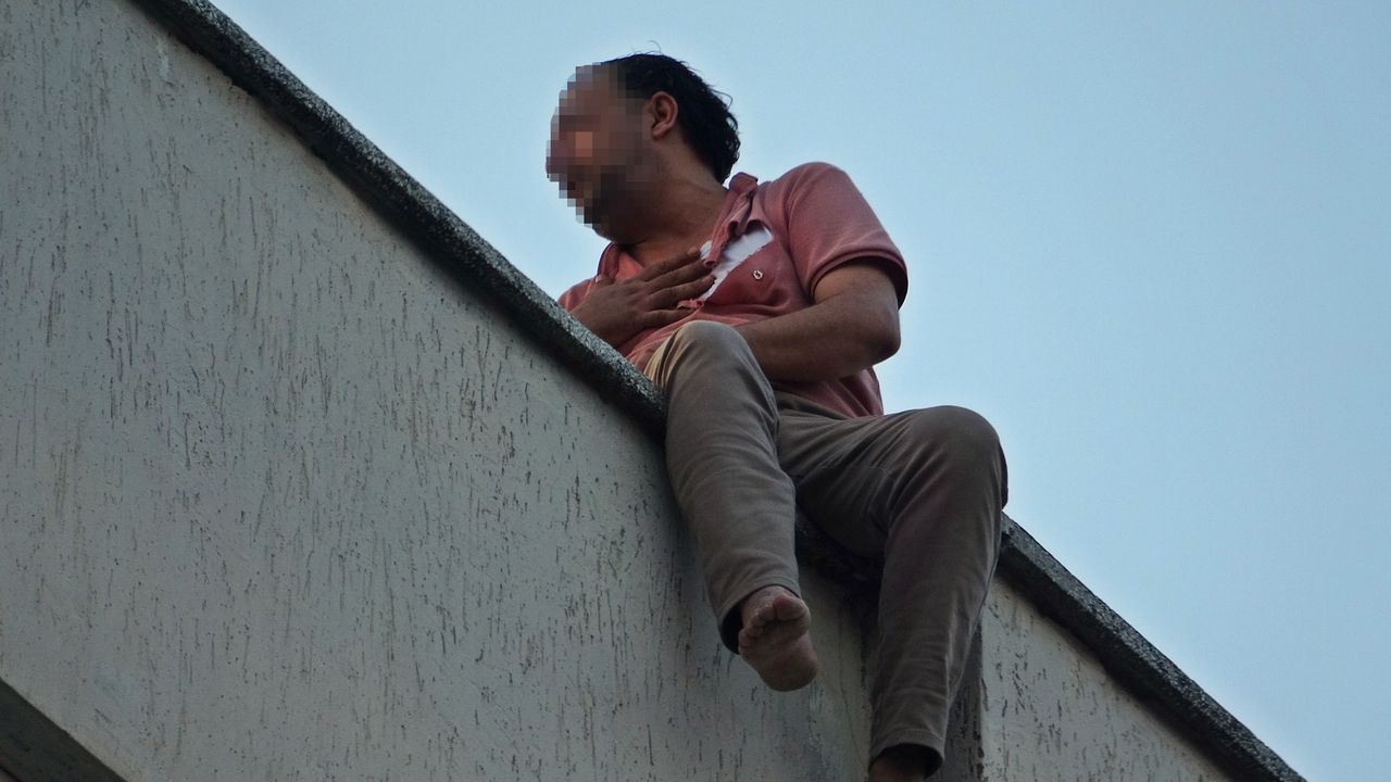 Bahadır T. zaman zaman çatıdaki korkuluklara çıkıp tehlikeli hareketlerde bulunurken, mahalleliler ise olan biteni meraklı gözlerle izledi.