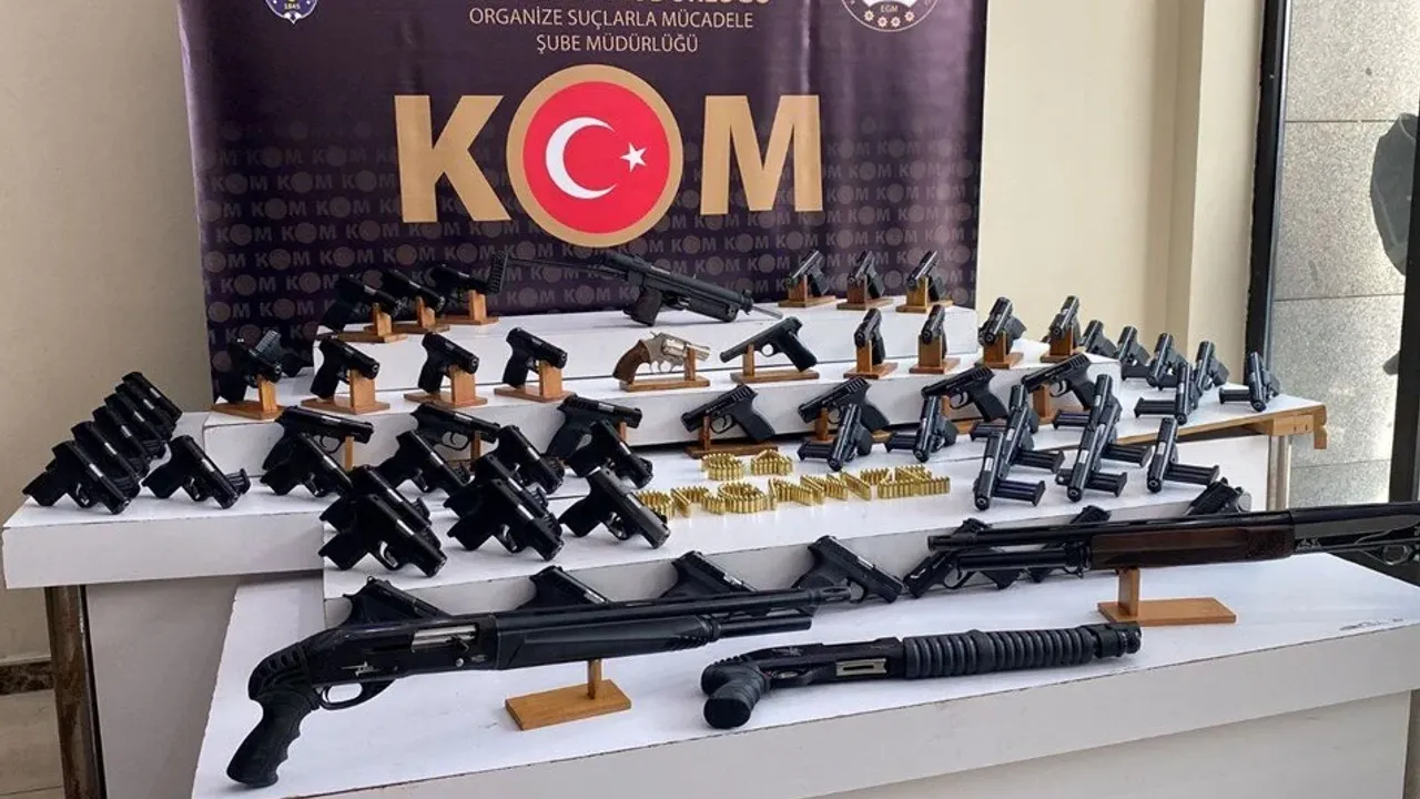 Jandarma ekiplerince 2 şüphelinin yayladaki ikametgah ve eklentilerine düzenlenen operasyonda yapılan aramada 1 9 mm çapında ruhsatsız tabanca,1 ruhsatsız av tüfeği,1 tabanca şarjörü, 27 tabanca mühimmatı ve 7 av tüfeği fişeği ele geçirildi.