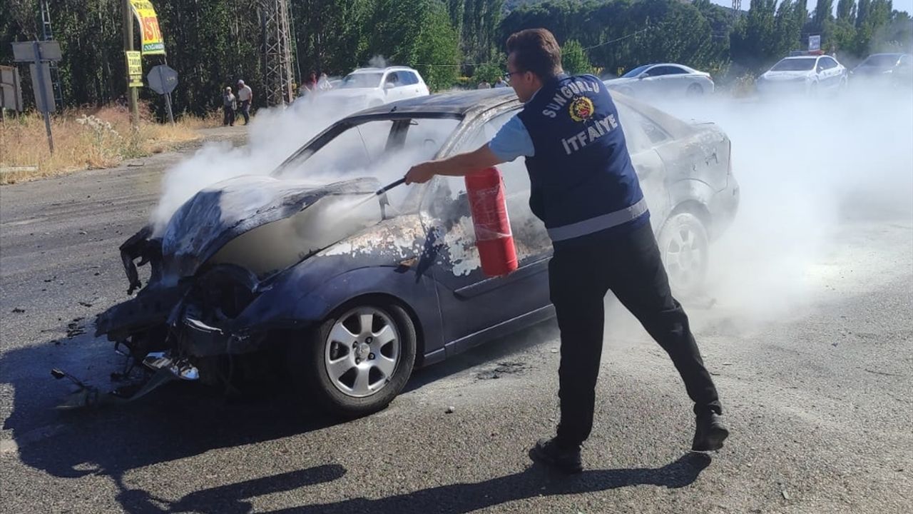 Kaza nedeniyle 09 AH 005 plakalı otomobilde çıkan yangın, Sungurlu Belediyesi itfaiye ekiplerince söndürüldü.