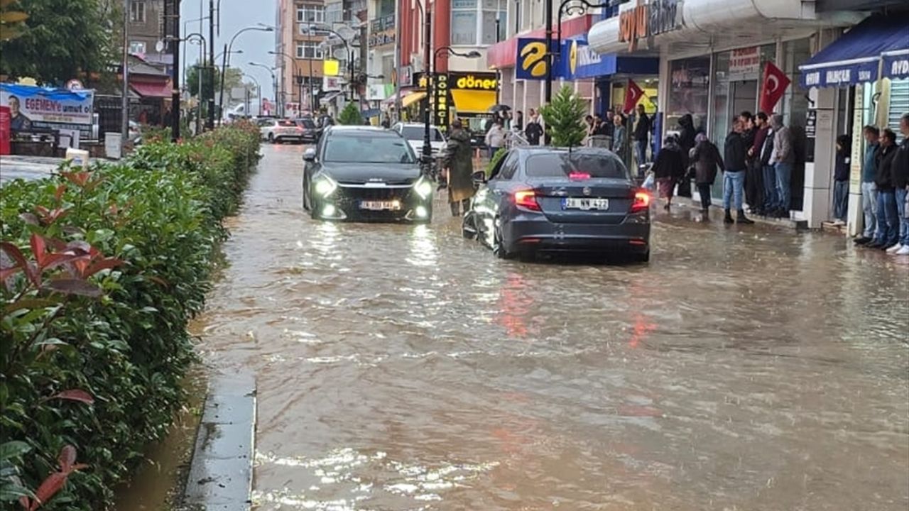 İlçede sağanak nedeniyle cadde ve sokaklarda su birikintileri oluştu, bazı binaların zemin katlarındaki iş yerlerini su bastı.
