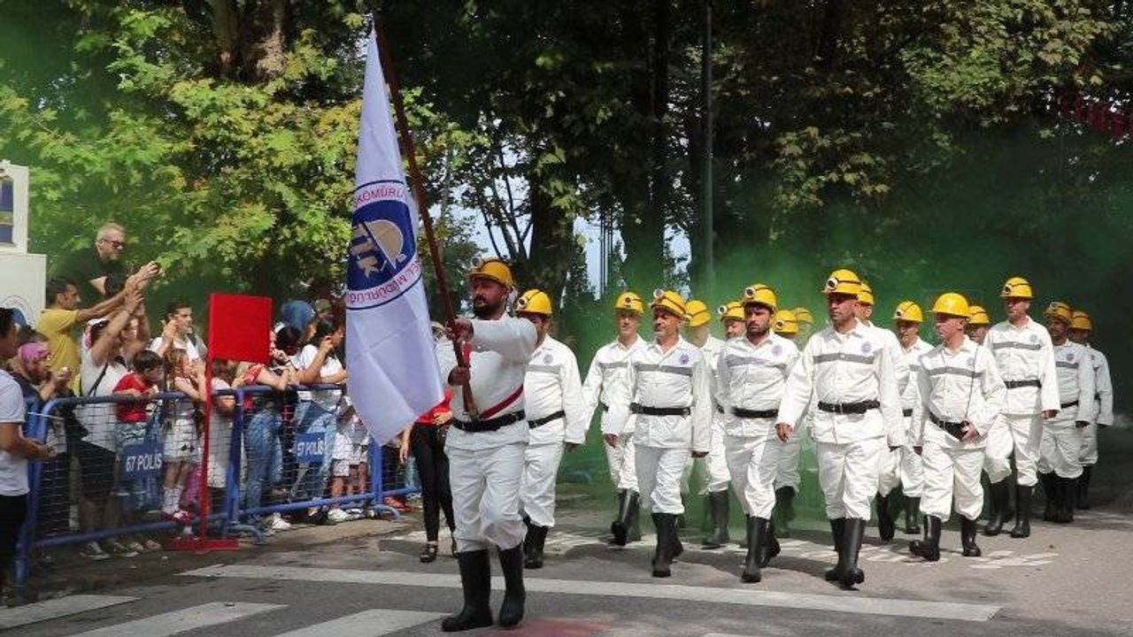 İş kıyafetleriyle yürüyen maden işçileri, büyük alkış topladı. Tören, resmi araçların geçişiyle sona erdi.