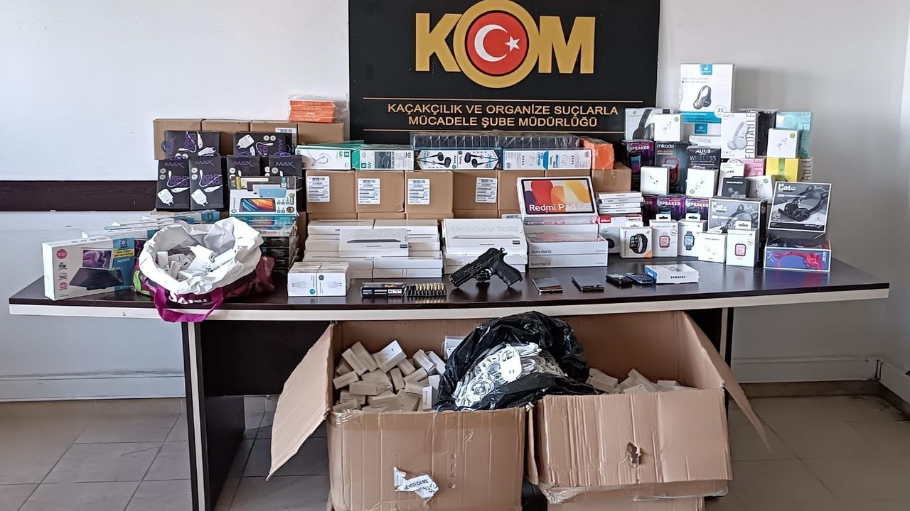 Bunun üzerine şüphelilere ait 11 ikamet, 7 iş yeri ve 3 depo olmak üzere toplam 21 adrese eş zamanlı operasyon yapıldı, 12 şüpheli yakalandı. Adreslerde yapılan aramada piyasa değeri yaklaşık olarak 2 milyon lira olan 14 adet gümrük kaçağı cep telefonu, 765 adet şarj adaptörü, 148 adet cep telefonu kulaklığı, 46 tablet, 5 adet telefon bataryası, 6 adet akıllı saat, 8 adet müzik kutusu, güvenlik kamerası ve ruhsatsız tabanca ile mühimmat ele geçirildi.