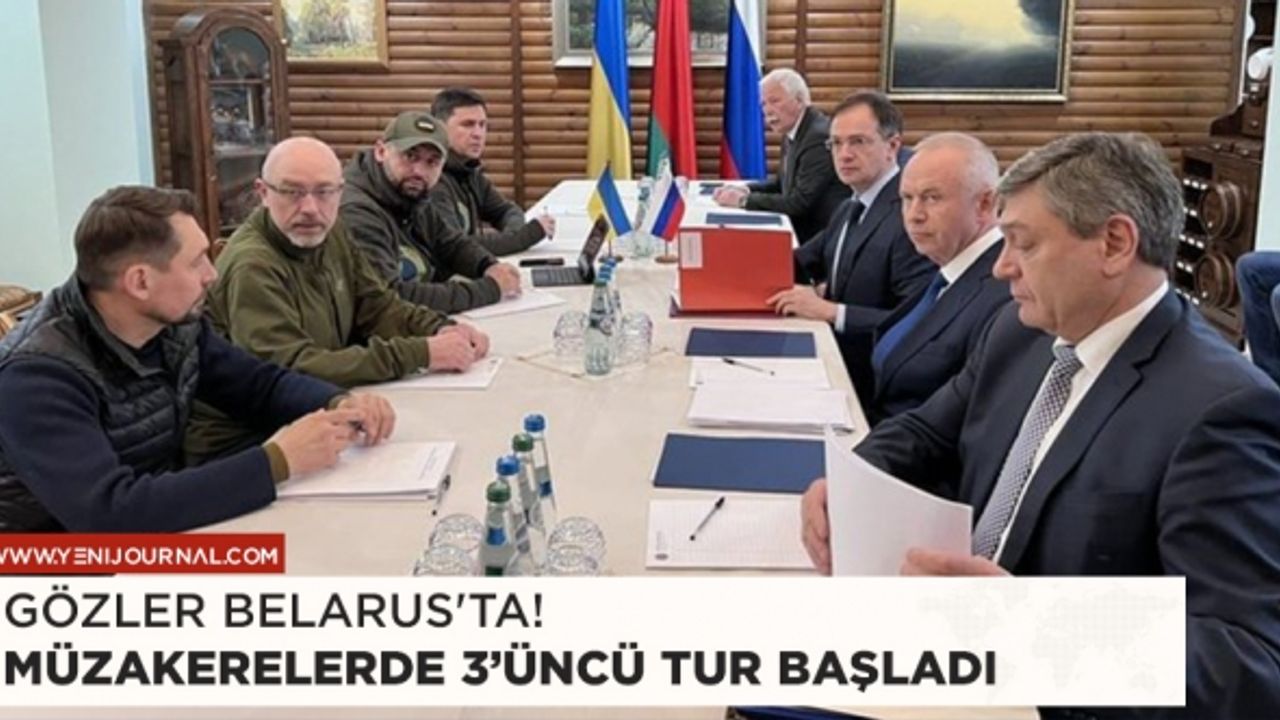 Rusya’nın Ukrayna’ya saldırıları sonrasında Ukrayna ve Rusya arasındaki müzakereler devam ediyor. İlk iki görüşmede olumlu sonuç alamayan Ukrayna ve Rusya heyetleri arasındaki müzakere görüşmelerinin 3’üncü turu TSİ 17.00 Belarus'un Belovezhskaya Pushcha bölgesinde başladı. Rusya tarafı toplantı yerine yaklaşık 1 saat önce, Ukrayna tarafı ise toplantıya 20 dakika kala ulaştı.