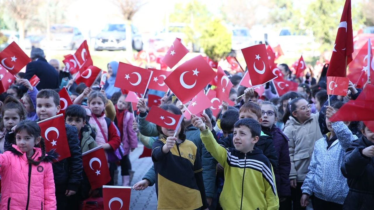 Daha sonra İstiklal Marşı'nı söyleyen öğrenciler, bayraklarını sallayarak sınıflarına geçti.
