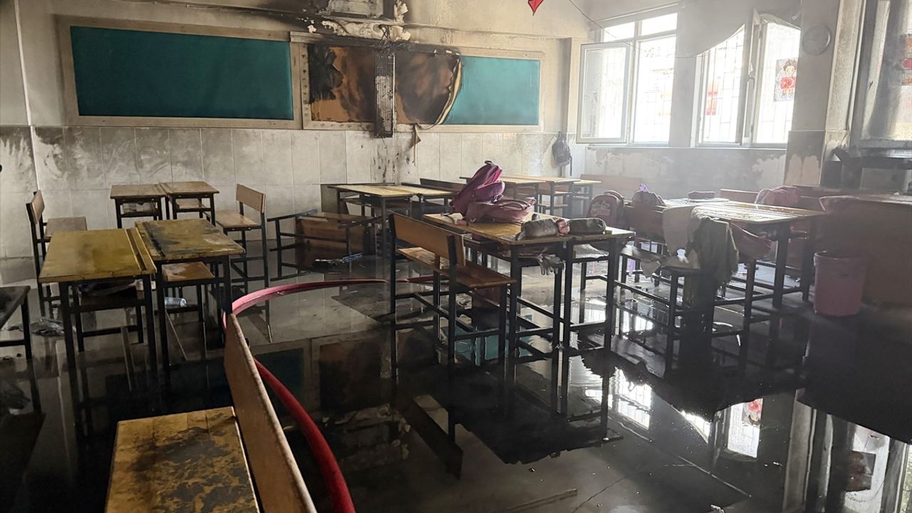 Okula gelerek yangını söndüren itfaiye ekipleri, binada mahsur kalanın olmadığını belirledi.