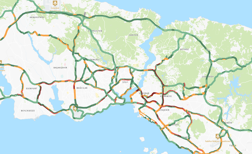 Pazartesi sabahı trafik haritasında birçok bölge kırmızı oldu.