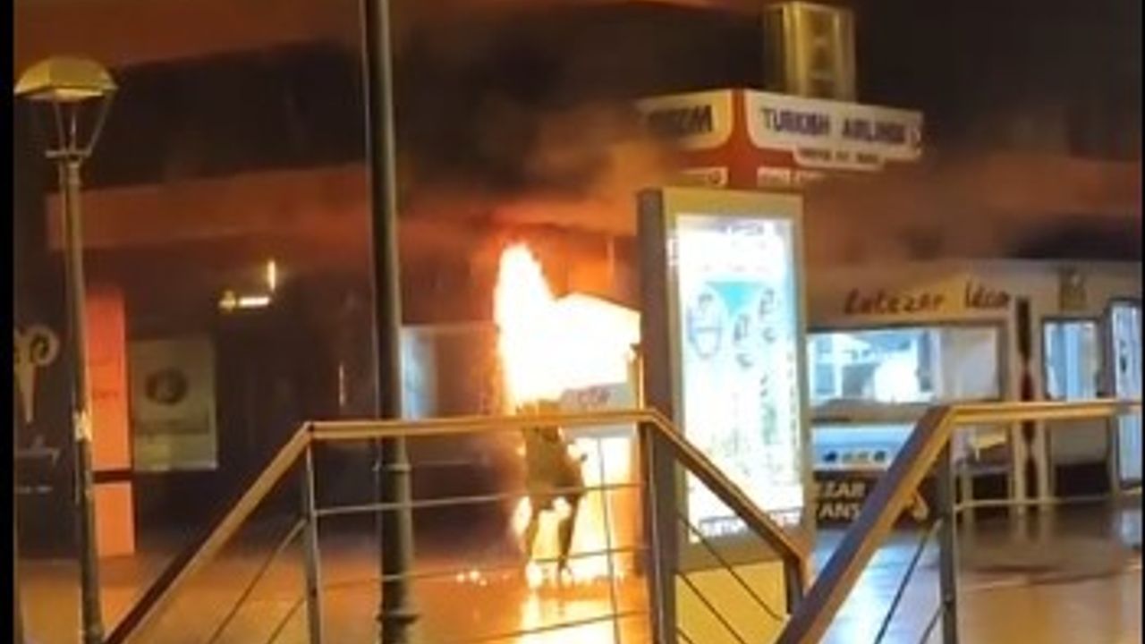 Antalya’nın en işlek noktasındaki "Lidya Bank" isimli Romalı heykelini tekmeleyen bir kişi, daha sonra benzin dökerek ateşe verdi. O anlar saniye saniye güvenlik kamerasına yansıdı.