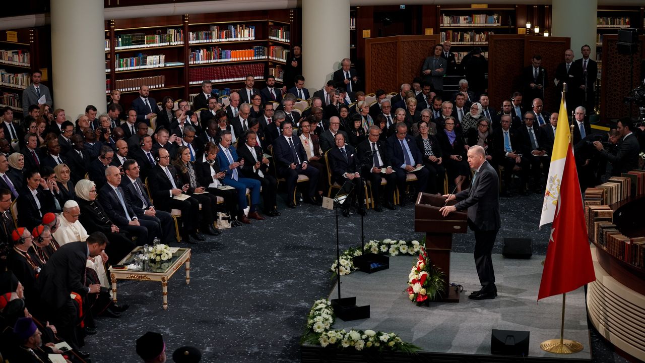 Cumhurbaşkanı Recep Tayyip Erdoğan, Vatikan Devlet Başkanı Papa 14. Leo ile heyetler arası görüşmenin ardından davetlilere hitap etti.