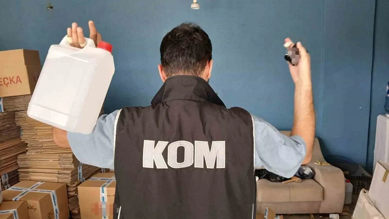 Operasyon kapsamında; 5,8 ton taklit etiketli etil alkol, 4,46 litre içki aroması, 4 bin 470 adet boş içki şişesi, 12 bin 50 adet kapak, 500 adet içki kutusu bulundu. Etil alkolün merdiven altı şartlarda üretildiği, dolum için hazırlanan şişe ve kapakların da iç piyasaya sürülmeye hazırlandığı belirlendi.
