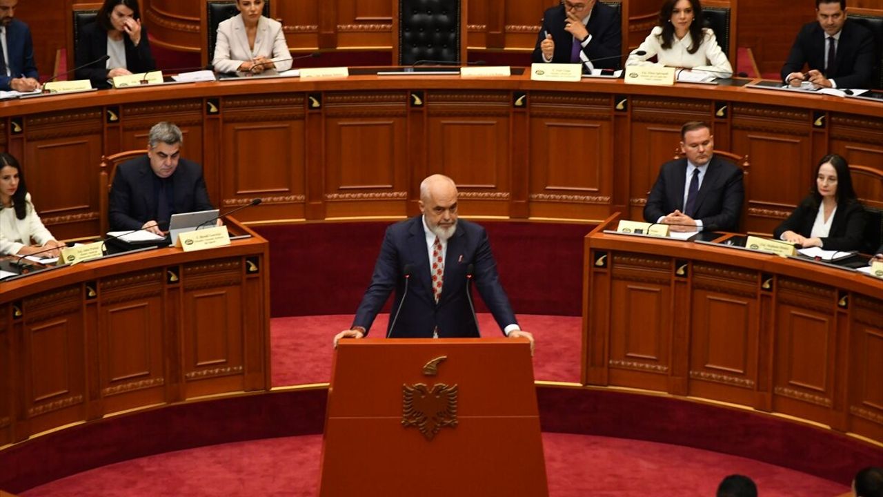 Başbakan Rama'nın, ülke gündemine oturan, yapay zeka tarafından oluşturulan Sanal Bakan Diella'nın video mesajının Mecliste gösterilmesini talep etmesi üzerine muhalefetten tepki geldi.