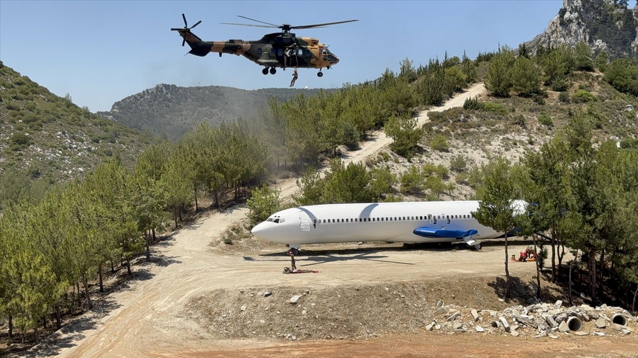 Senaryo kapsamında yapılan kara safhasında, İzmir Adnan Menderes-Lefkoşa Ercan Havalimanı uçuşunu gerçekleştiren bir uçağın tehlike sinyali vermesinin ardından gerçekleştirilen arama-kurtarma harekatı canlandırıldı.