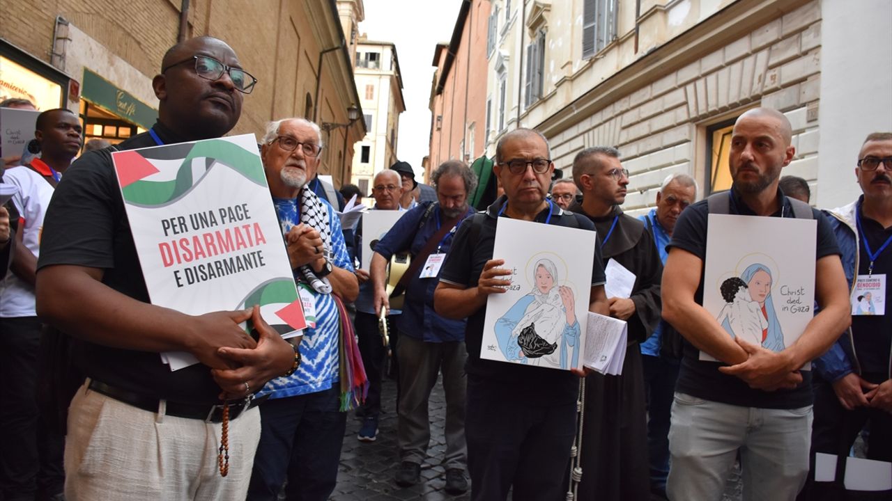 İsrail'in Gazze'deki soykırımına karşı çıkmak için Katolik Kilisesi'ne mensup rahiplerce kurulan "Soykırıma karşı çıkan rahipler" oluşumu, İtalya'nın başkenti Roma'da Filistin'deki katliamın durması için dua etti.