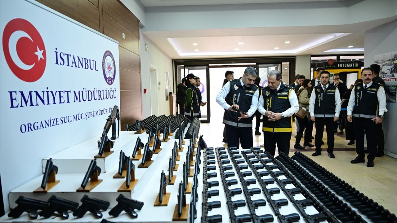 İstanbul İl Emniyet Müdürü Selami Yıldız, operasyonlarda ele geçirilen silahların sergilendiği Vatan Caddesi'ndeki yerleşkede personeli tebrik etti.