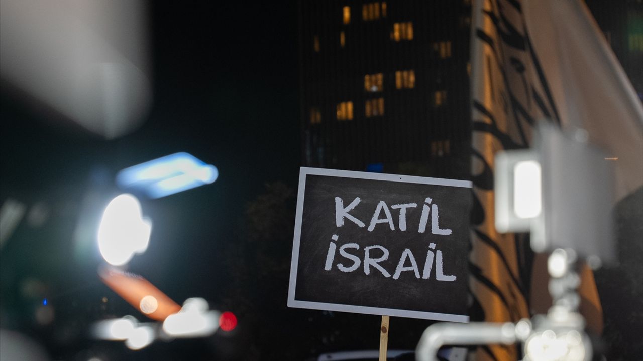 "İnsanlığın onuru Sumud Filosu", "Kudüs bizimdir, bizim kalacak", "Katil İsrail, işbirlikçi ABD" ve "İşte burası katillerin yuvası" sloganları atan gruptakiler, "Hamas seninleyiz" yazılı pankart açtı.