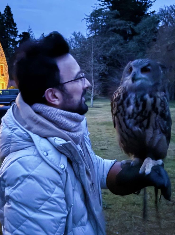 Eline özel bir eldiven giyen Tarkan, yırtıcı bir baykuş türü olan puhu kuşuyla çektirdiği fotoğraflarını takipçileriyle paylaştı.