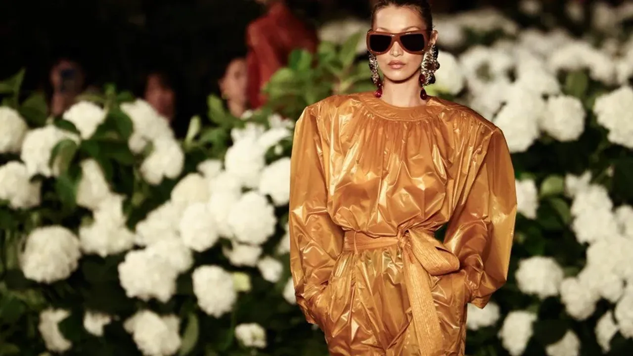 Saint Laurent defilesinde boy gösteren Hadid, Paris Moda Haftası'nın ilk gününe damga vurdu.