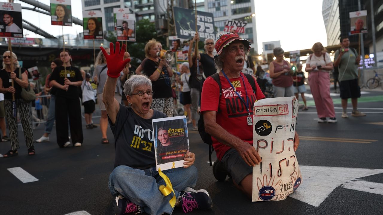 İsrail'in Tel Aviv kentinde toplanan onlarca kişi, Gazze'deki savaşın durdurulması ve İsrailli esirlerin geri getirilmesi talebiyle gösteri düzenledi. Göstericiler, ellerinde rehinelerin fotoğraflarını, İsrail bayrakları ve ateşkesin sağlanmasını talep eden dövizler taşıdı.