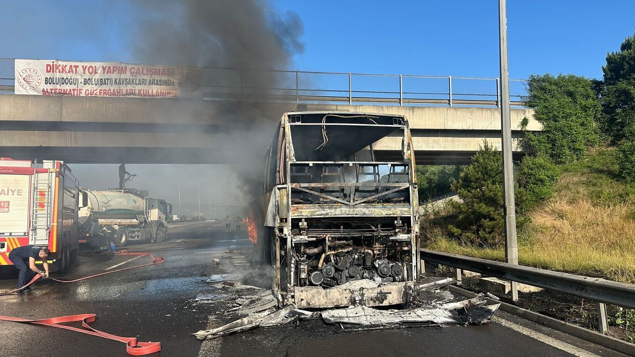 Yangın, sabah saatlerinde TEM Otoyolu’nun Bolu geçişinde Köroğlu Rampaları mevkiinde meydana geldi. Edinilen bilgiye göre, İstanbul istikametine seyir halinde olan bir yolcu otobüsünün motor kısmında henüz bilinmeyen bir nedenle yangın çıktı. Alevler kısa sürede tüm aracı sardı. İhbar üzerine olay yerine itfaiye ve Karayolları ekipleri sevk edildi. İtfaiye ekiplerinin yoğun çalışması sonucu yangın kontrol altına alınarak söndürüldü.