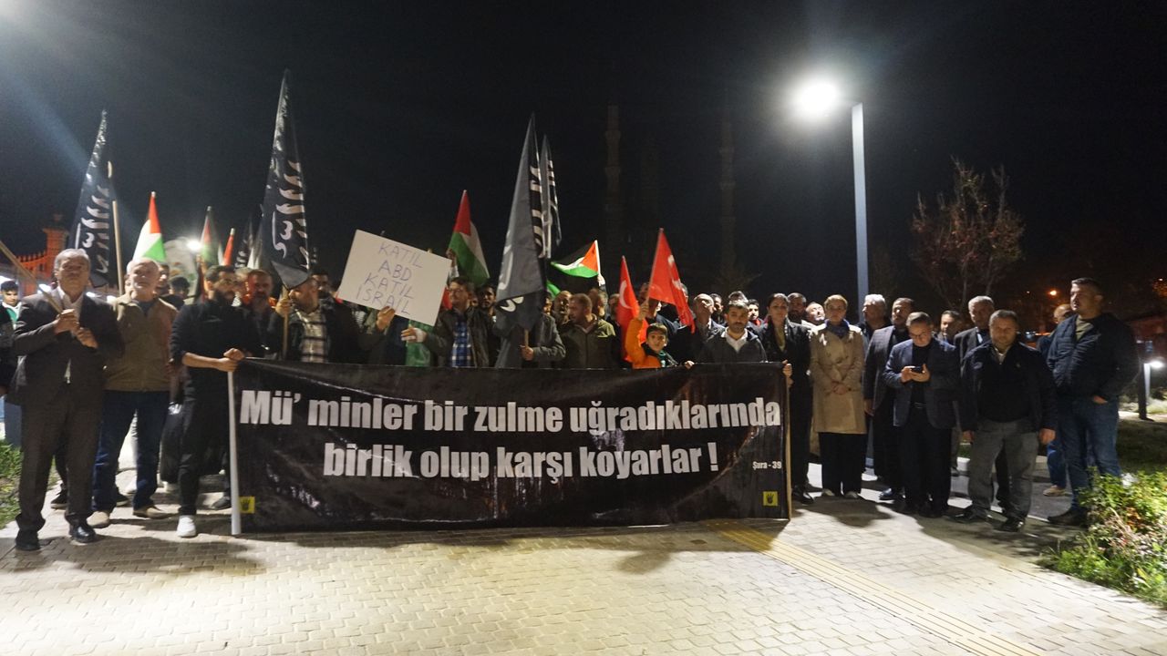 İsrail'in Gazze'ye yönelik saldırılarını protesto etmek amacıyla Edirne'de bir araya gelen çeşitli sivil toplum kuruluşları, siyasi parti temsilcileri ve vatandaşlar, Filistinliler için dua etti.
