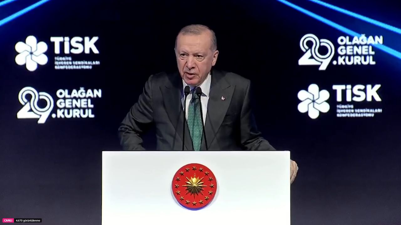 İşte Erdoğan'ın konuşmasından satır başları: Türkiye İşveren Sendikaları Konfederasyonumuzun kıymetli mensupları, değerli misafirler, hanımefendiler, beyefendiler, sizleri en kalbi duygularımla, hürmetle ve muhabbetle selamlıyorum. 29. Olağan Genel Kurulumuz münasebetiyle TİSK ailesinin siz mümtaz üyeleriyle bir araya gelmekten büyük bir memnuniyet duyuyorum.