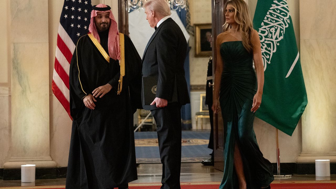 ABD Başkanı Donald Trump ve Suudi Arabistan Veliaht Prensi Muhammed bin Selman, Beyaz Saray'da akşam yemeğine katıldı. Trump ve eşi Melania Trump, Veliaht Prens Muhammed bin Selman'ı kapıda karşıladı. Liderler daha sonra askeri bandonun çaldığı marşlar eşliğinde Doğu Odası'ndaki akşam yemeğine geçti.