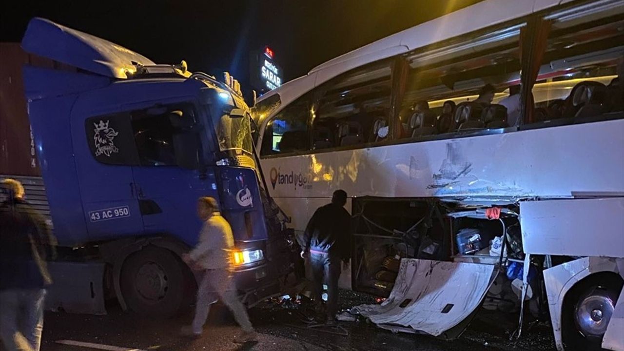 Kazada, sürücüler ile tur otobüsündeki 18 yolcu yaralandı.