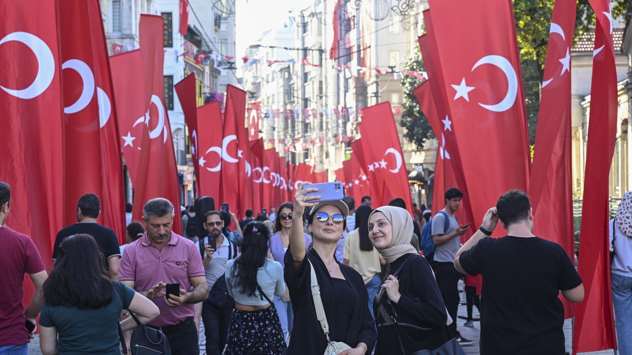 İstiklal Caddesi kırmızı beyaz cadde bayraklarla donatıldı, cadde yüzüncü yıl kutlamalarına hazırlandı.