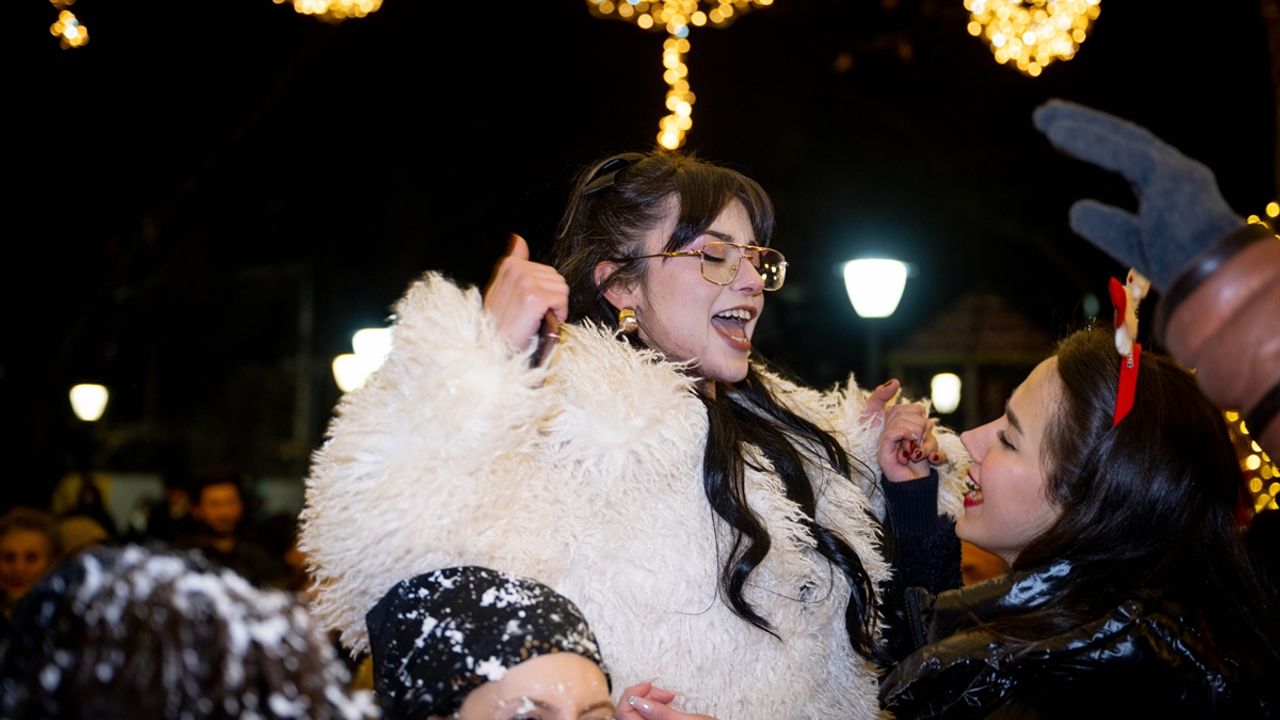Hava sıcaklığının yaklaşık sıfırın altında 10 derece olmasına rağmen, vatandaşlar dans ederek yeni yılı kutladı.