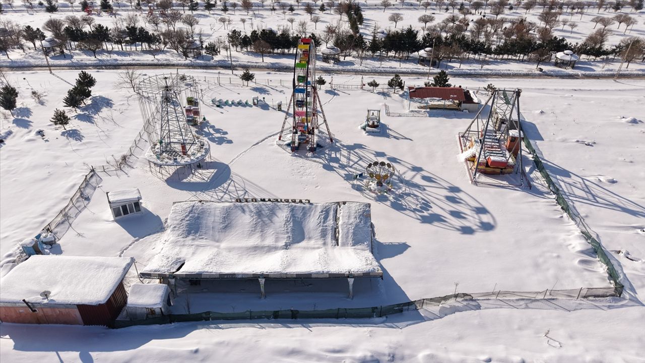Kar kalınlığının 1 metreye ulaştığı ilçenin Sahilkent Mahallesi'nde bulunan lunaparktaki bir oyun alanının çatısı çöktü.
