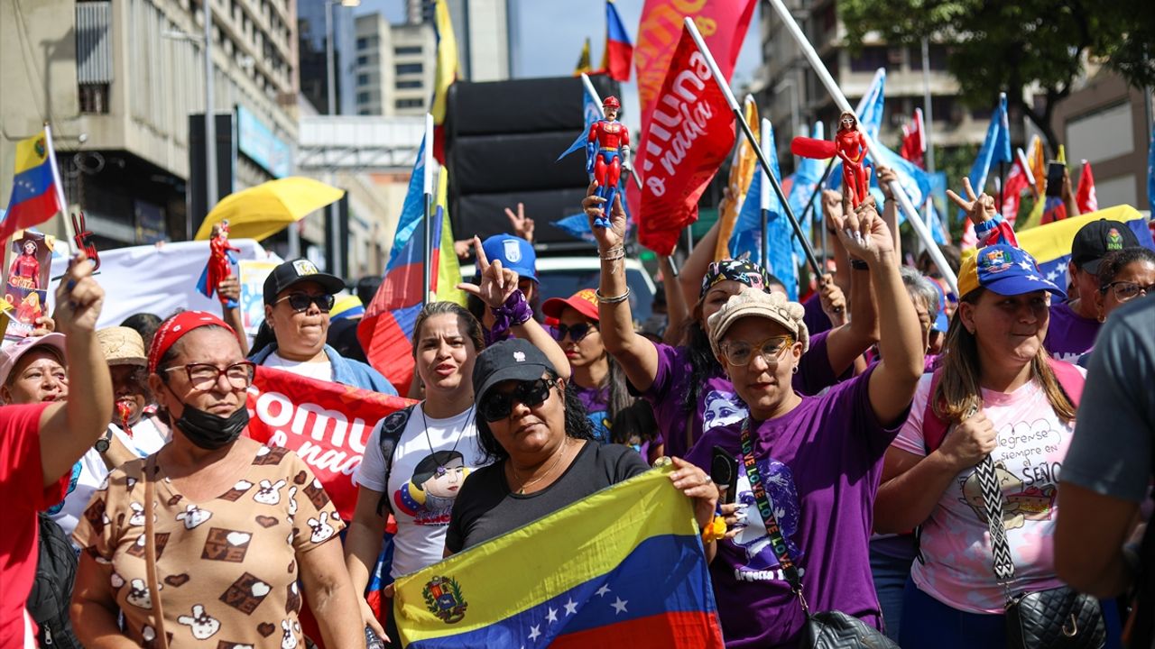 Maduro destekçileri, ABD'nin askeri müdahalesine ve başkanlarının alıkonulmasına karşı pankartlar taşıyarak, "Venezuela kararlı bir şekilde mücadele ediyor", "Onu (Maduro) geri istiyoruz", "İşçi sınıfı başkanımızı geri verin", "Egemenlik pazarlık konusu değildir" ve "Maduro'ya her zaman sadığız" şeklinde sloganlar attı.