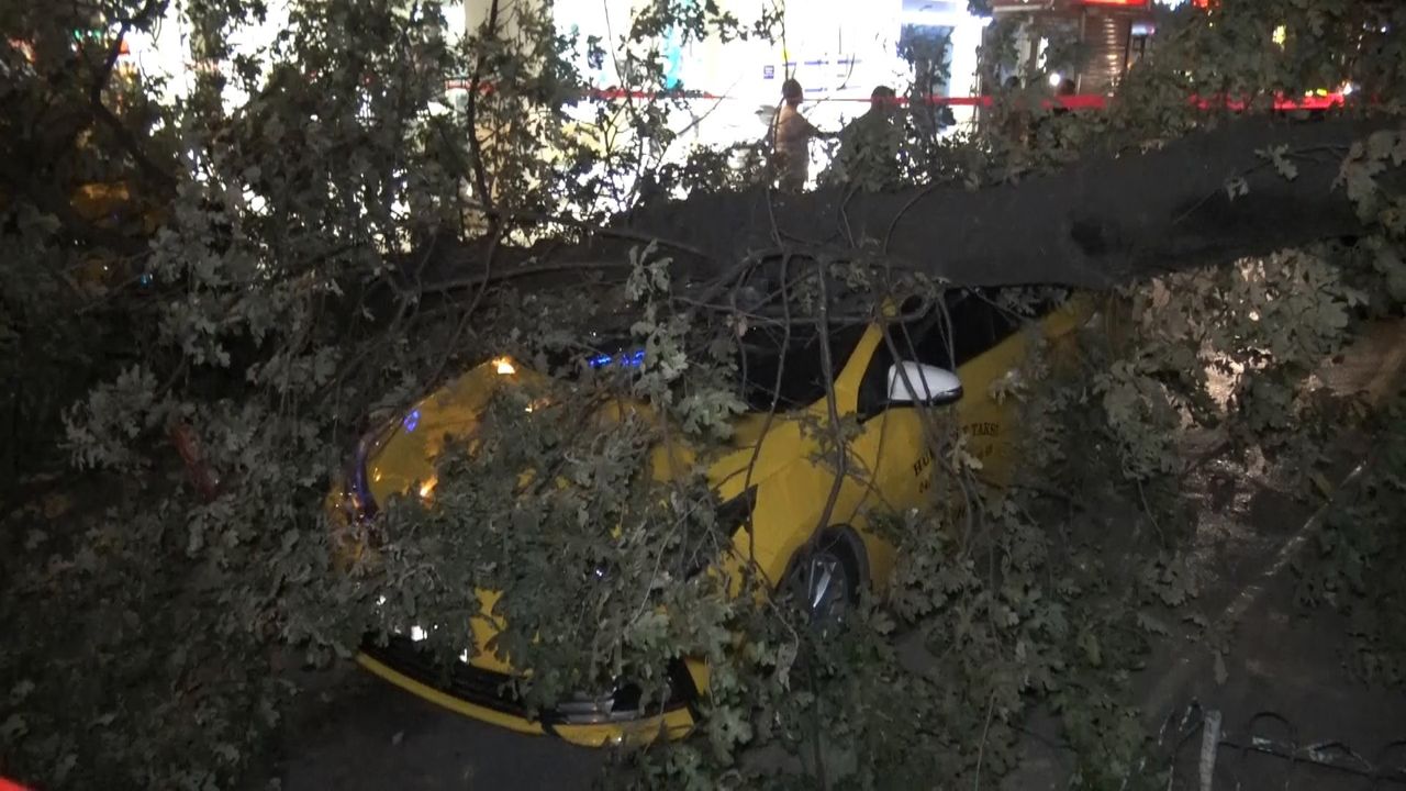 Bursa’da bir taksi durağının yanında bulunan 193 yaşındaki anıt ağaç, iki ticari taksinin üzerine devrildi. Devrilen ağaç yanındaki elektrik tellerine dolanırken şans eseri çevrede kimsenin olmamasıyla faciadan dönüldü.