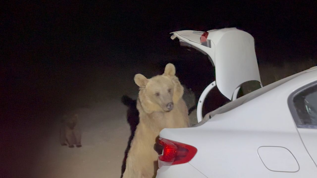 Nemrut Krater Gölü civarlarında yaşayan anne ayı ve yavruları, bu kez de teleskopla gökyüzünü gözlemlemek için Nemrut’a gelen ziyaretçilerin arabalarının bagajlarını açarak arabada bulunan yiyecekleri aldı. Yavru ayılar ise gözlem...