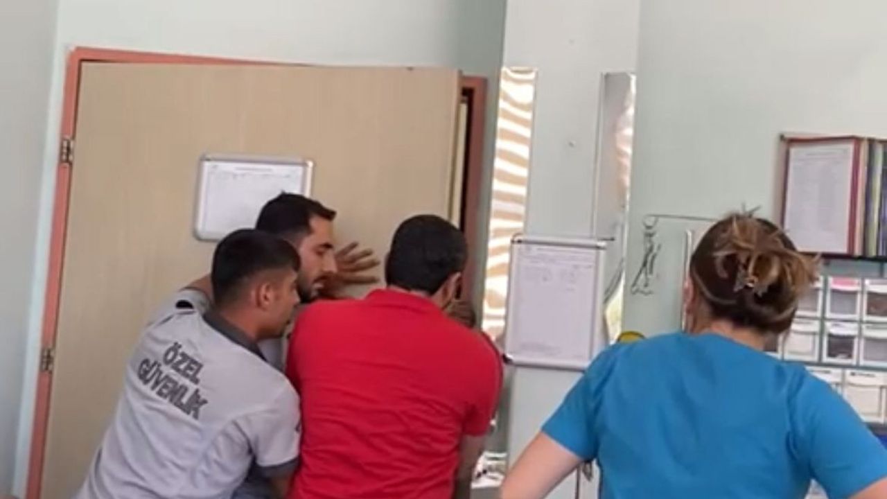 Yaşanan arbede üzerine güvenlik görevlileri, saldırganları muayene odasından...