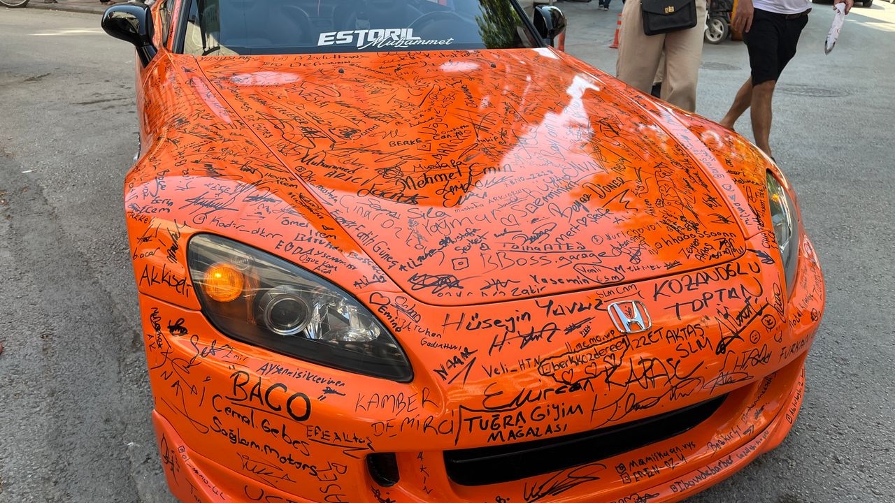 Konya'da yaşayan 25 yaşındaki esnaf Muhammet Çetin, otomobiline kendi çevresiyle birlikte imza atmaya başladı. Çetin'in iş yerinin karşısında duran turuncu renk kaplamalı Honda S2000 Cabrio otomobili ilgi odağı olurken, görenler...