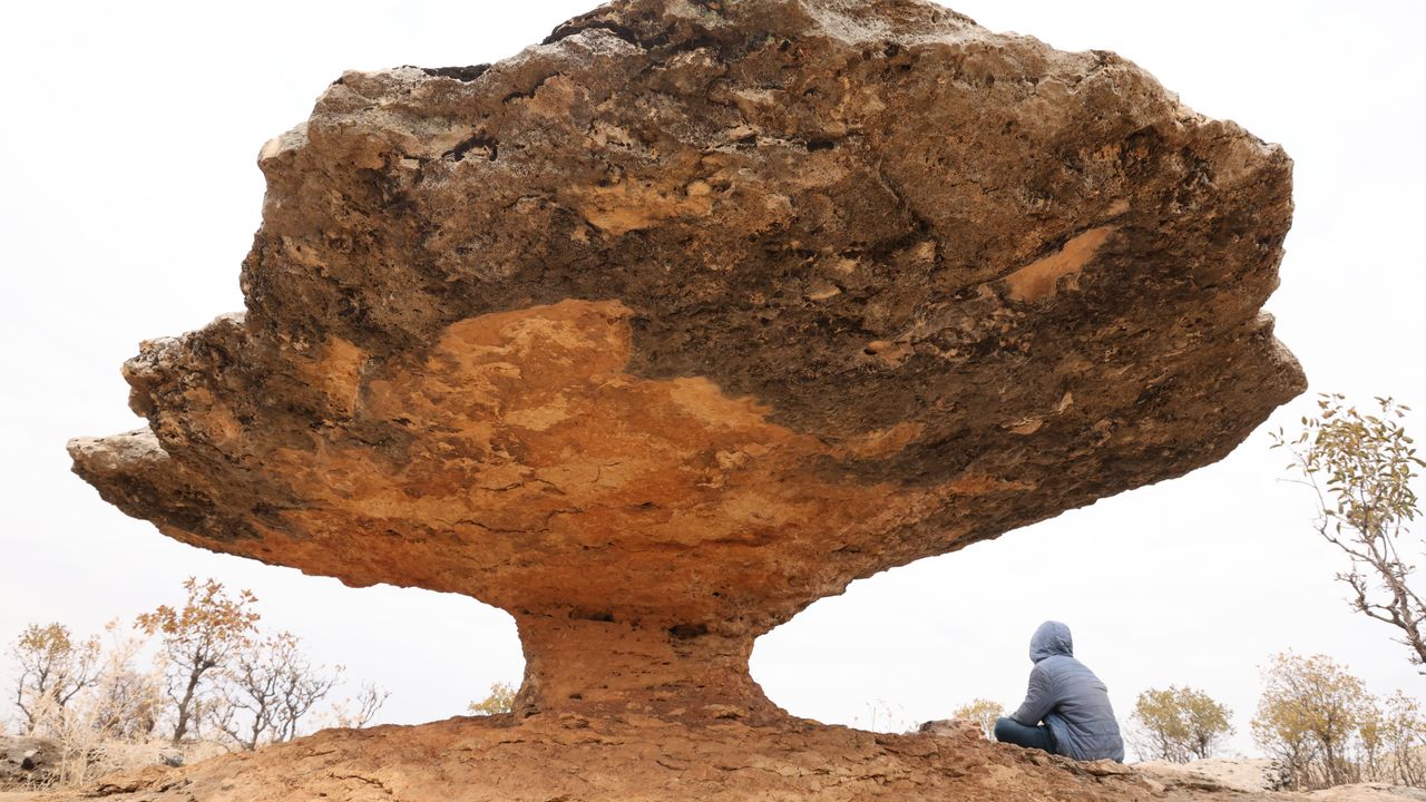 Diyarbakır'ın Kocaköy ilçesinde ince bir sütunla ayakta duran geniş kaya parçası, buzul çağı kalıntısı olarak değerlendiriliyor.